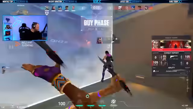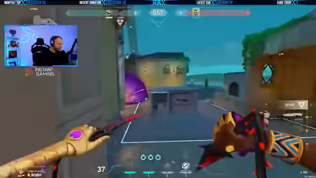 04:39:36Zu Beginn des Abschnitts wurden taktische Anweisungen für das Team ausgegeben. Ein Spieler wurde angewiesen, allein den Weg A zu nehmen, während der Streamer Unterstützung ankündigte. Die Kommunikation war auf kurze, präzise Befehle wie 'Stim Beacon and go' und 'Run in, run in' fokussiert, was darauf hindeutet, dass es sich um einen schnellen, koordinierten Angriff handelte. Ein Hindernis wurde als Problem identifiziert, als der Streamer bemerkte, dass er einen Mitspieler blockierte, und ein gegnerischer Spieler namens Cypher wurde beobachtet, was die taktische Situation komplexer gestaltete.