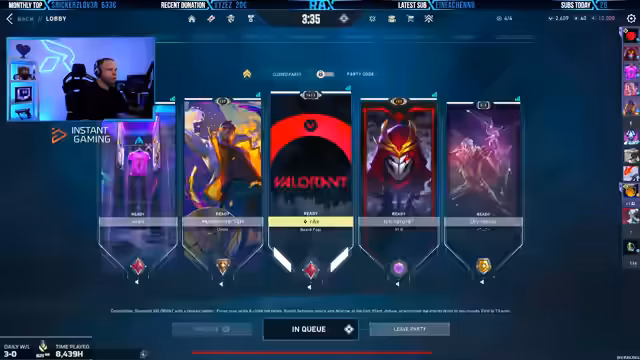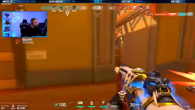 00:14:26Der Streamer startet eine Gaming-Session in einem Spiel, das möglicherweise Valorant ist. Er versucht mit seinem Team zu koordinieren und gibt taktische Anweisungen an seine Mitspieler. Dabei werden spielrelevante Begriffe wie Chamber, Neon und Waylay verwendet. Er verliert jedoch einige Runden und zeigt sich frustriert über die Leistung des Teams.