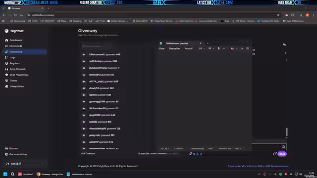 02:50:26Es wird ein Giveaway für 10 Euro Welle Guthaben veranstaltet, das bei Instant Gaming erworben wurde. Die Teilnahme erfolgt durch das Schätzen einer Zahl zwischen 1 und 1000, wobei die Kommentare angepasst werden, um eine faire Chance für alle zu gewährleisten. Nach der Verlosung wird ein Gewinner namens Lino mit der Zahl 241 bekannt gegeben. Dieser erhält eine Anleitung, wie er den Code über Discord einlösen kann, um das Guthaben zu erhalten. Es wird betont, dass solche Giveaways regelmäßig stattfinden und nicht zu festen Zeiten, um reines Giveaway-Watching zu vermeiden.