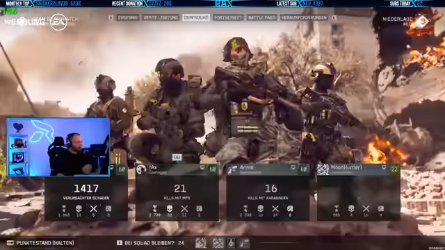 06:21:28Der Streamer kündigt eine Kooperation mit EA für Battlefield 6 an und bietet Zuschauern an, das Spiel kostenlos im Rahmen eines Free Trails bis zum 2.12. zu spielen. Er zeigt verschiedene Modi und Karten, die ohne Kauf zugänglich sind, und erwähnt einen 15% Rabatt über den bereitgestellten Link. Während des Streams spielen er und Zuschauer Battlefield 6, wobei er Gameplay-Tipps gibt und den Durchbruch-Modus erklärt. Er lobt das Spiel für seine Performance und Spaßfaktor, besonders nach längerem Spielen und trotz vieler Fahrzeugaktionen auf der Map.