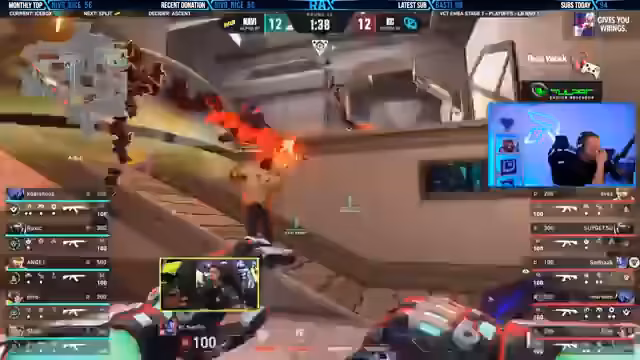 04:25:24Das Spiel wird detailliert analysiert. KC gelingt es, einen Mid-Round-Sieg zu erringen, indem sie den Spike site verfechten und stattdessen von außen agieren. Spieler wie Elite und Sadak treten hierbei in Erscheinung, während Navi verspielt, langsam zu spielen und dadurch komplett ausgeschaltet wird. Hero von 'Vi muss in einer schwierigen Situation einen Clutch spielen, um die Runde zu retten, was die hohe Intensität des Matches unterstreicht.