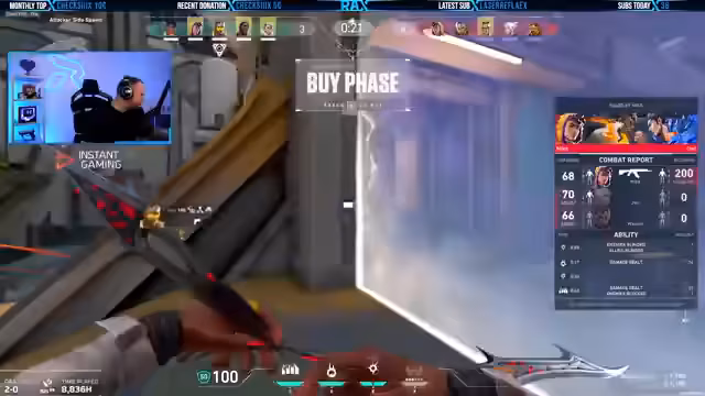 00:01:10Zu Beginn des Streams konzentriert sich der Streamer auf die neueste Season des Spiels, die einen neuen Agenten namens Phoenix mit sich bringt. Er spielt anfangs mit Phoenix und berichtet von seiner Performance im Ranked-Modus, darunter auch von einer beeindruckenden Serie von zehn Kills in kurzer Zeit durch einen Mitspieler namens Reina. Trotz guter Einzelleistungen wird der erste Teil des Spiels als schwierig beschrieben, mit einer knappen Niederlage, bei der der Streamer selbst frühzeitig stirbt und das Spiel als ärgerlich empfindet.