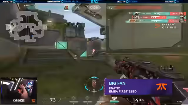 03:51:06Nach der technischen Pause und dem Sieg auf Haven wechselt man auf die Map Split, die von Fnatic gepickt wurde. Die Kommentatoren analysieren taktische Entscheidungen, wie Gen.G.'s Munchkin Tendenzen seiner Gegner liest. Trotz der Führung von Gen.G. (12-11) wird die Leistungsstärke von Fnatic, insbesondere von Spieler Kayak, weiter hervorgehoben. Die Spannung bleibt hoch, da Fnatic Momentum sammelt und sich die Möglichkeit eines Comebacks für den Map-Sieg eröffnet.