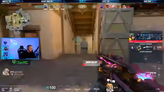 00:23:36Ein wiederkehrendes Problem ist, dass automatisierte Nachrichten wie Resubs und Spenden nicht mehr korrekt vom Streamer vorgelesen werden. Dies wird als störend empfunden. Zwischen den technischen Fehlern konzentriert sich der Streamer stark auf das Gameplay selbst. Es gibt intensive Runden, gefüllt mit taktischen Angriffen, Verteidigungen und dem Einsatz von ultimativen Fähigkeiten. Der Streamer zeigt Begeisterung für actionreiche und knappe Match-Situationen, auch wenn diese manchmal zu Frustration führen.