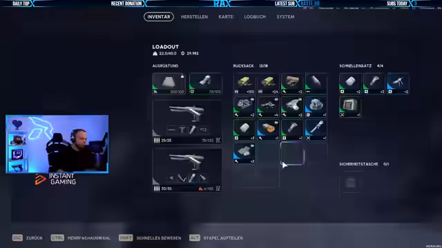 02:15:16Rax1337 berichtet von einer Pechsträhne in Valorant, bei der er trotz solider Leistung aufgrund von Team-Differenzen, Internet-Disconnects und toxischen Mitspielern mehrere Spiele verliert. Die Diskussion verlagert sich auf Spielmechaniken in Arc Raiders, insbesondere auf das Resetten des Stashs und die Möglichkeit, Gegenstände an andere Spieler weiterzugeben. Es wird betont, dass ein Reset des Stashs gewollt ist, um den Spielspaß des Neuerwerbens zu erhalten. Der Streamer zeigt seine Blueprints, darunter seltene wie den Wolfpack Blueprint und den Vitaspray Bauplan, und erklärt deren Bedeutung. Es wird auch ein 'Investmentkauf' eines seltenen Earthbound-Spiels für das Super Nintendo diskutiert, das als Wertanlage und nicht als bloße Ausgabe betrachtet wird, ähnlich wie eine Investition in Bitcoin.
