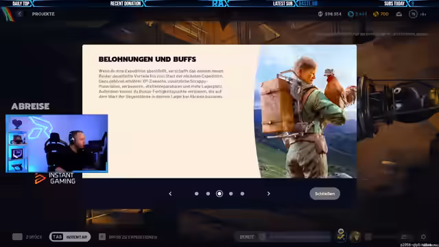 04:37:10Ein zentrales Thema ist das Expeditions-System, das als Langzeitmotivation dienen soll. Durch das Schicken von Charakteren und Inventar auf Expeditionen können permanente Vorteile wie erhöhter XP-Zuwachs, mehr Lagerplatz und verbesserte Reparaturen freigeschaltet werden. Der Streamer erklärt, dass man durch das Wegschicken von Gegenständen zwar alles neu sammeln muss, aber dadurch zusätzliche Belohnungen und einen neuen Antrieb erhält.