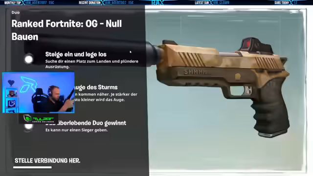 06:04:56Der Streamer und sein Co-Player bereiten sich auf den kommenden Amar Lost Legends Cup vor. Sie wählen ihre Charaktere aus, darunter OG-Skins, und überprüfen ihre Ingame-Settings. Die Waffenslots, Tastenbelegungen und Soundeinstellungen werden optimiert, um im Turnier bestmöglich performen zu können. Besonderen Wert wird auf die Erkennbarkeit von Gegnern und die Steuerung gelegt. Die Audiovisuellen Einstellungen wie 3D-Sound und die Darstellung von Schadenszahlen werden für einen klaren Vorteil angepasst.