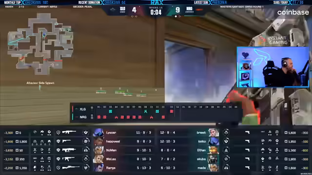 03:14:17Das Abyss-Spiel geht in die heiße Phase. Beide Teams setzen viel in ihre Fähigkeiten (Ultimates), um die entscheidenden Runden für sich zu entscheiden. XLG demonstriert beeindruckende Retakes und cleares Positionsspiel. Selbst in Runden, in denen NRG scheinbar im Vorteil ist, finden XLG-Spieler wie Skuba und Kiko Wegen zum Erfolg. Das Team hält dem Druck stand und gewinnt die Map knapp mit 13:11. XLG glänzt durch seine Moral und Nervenstärke.