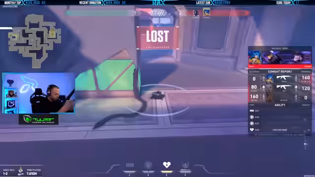 01:56:47Der Streamer äußert massive Frustration über die langen Wartezeiten auf Gegner. Im angespielten Spiel verdächtigt er einen gegnerischen Jett des Cheatings, da dieser auffällig präzise agiert und verdächtige Bewegungen zeigt. Dies unterstreicht die allgemeine Verärgerung über die Qualität des Matchmakings.
