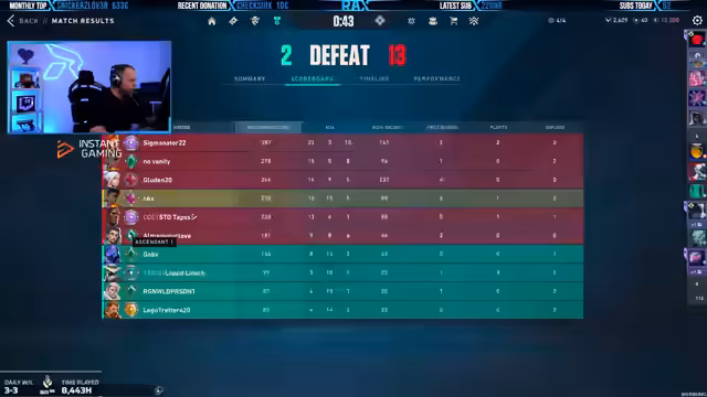 04:21:45Nach einem knappen Match, das mit einer Niederlage endete und zu einem Punktabzug von 21 führte, wird das Gegnerteam analysiert. Es wird vermutet, dass das Gegnerteam aus Smurfs bestand, da ein Dia 3 Spieler eine außergewöhnlich gute Leistung zeigte, die nicht seinem Rang entsprach. Die Diskrepanz zwischen den Rängen der eigenen und der gegnerischen Spieler wird als unfair empfunden. Es wird jedoch betont, dass solche Spiele trotz der Frustration über das Matchmaking immer noch Spaß machen, da die Kommunikation im 5-Stack gut ist. Nach der Analyse wird ein neues Giveaway für 10 Euro Valorant-Guthaben angekündigt. Die Zuschauer werden aufgefordert, eine Zahl zwischen 1 und 107 in den Chat zu schreiben, um teilzunehmen. Der Chat wird in den Slow-Mode versetzt, um eine faire Teilnahme zu gewährleisten, wobei die ersten Minuten des Giveaways zufällig sind, bevor weitere Hinweise gegeben werden.