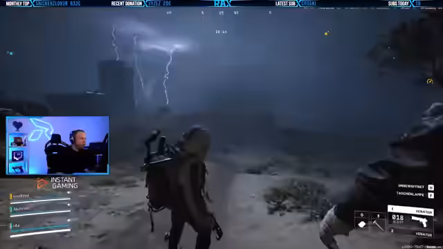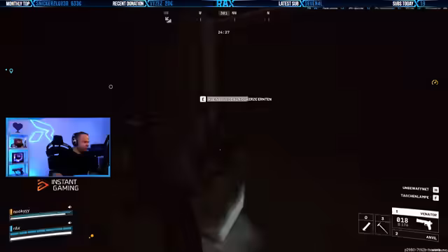 06:11:11Der Streamer und sein Team finden wertvolle Gegenstände wie Mod-Komponenten, Isolierband und zwei Venator-Waffen, was als die beste Loot-Runde überhaupt bezeichnet wird. Sie diskutieren, ob die Loot-Raten generell erhöht wurden oder ob es einfach Glück war. Währenddessen werden sie von Schüssen aus der Ferne abgelenkt und müssen sich vor einem "Snitch" (Spitzel) in Acht nehmen, der Wespen anlockt. Sie versuchen, sich in Sicherheit zu bringen und nutzen Ködergranaten, um Gegner abzulenken, während sie sich in einer ungünstigen Position befinden. Die Teammitglieder müssen zusammenarbeiten, um feindliche Angriffe abzuwehren und sich neu zu positionieren, wobei sie feststellen, dass in ihrer aktuellen Zone weniger los ist als erwartet.