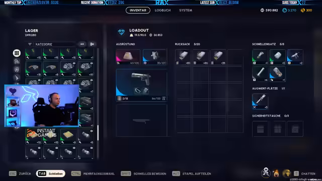 05:53:12Der Stream konzentriert sich auf das Arc Raiders-Event, das Ziel ist, durch das Abschießen von fliegenden Gegnern und das Sammeln von Spitzel-Scannern Punkte zu sammeln. Die geplante Strategie ist, im Dreier-Team bei Raumhafen zu starten, wobei ein Spieler sich auf das Werfen und Abschießen der Spitzel konzentriert, während die anderen Gegner in der Umgebung bekämpfen. Das Ziel ist, mit dieser Methode auf mindestens 45.000 Punkte zu kommen.