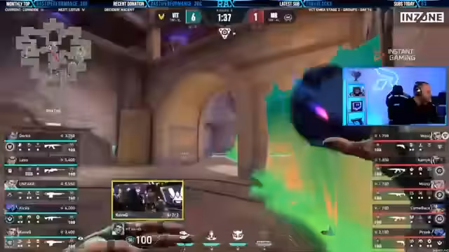 05:52:56Das zweite Spiel auf der Map Lotus beginnt. Gentlemates wählt eine Neon-Breach-Kombination, was aber Probleme mit der Verteidigung der Vise-Zone bereitet. Es wird kritisch hinterfragt, ob Gentlemates ohne den Druck zu verlieren noch taktisch so diszipliniert agieren können. Während Vitality mit Kovac auf der Vise stark agiert, wird die mangelnde Präsenz und taktische Organisation von Gentlemates festgestellt, die trotz einzelner guter Momente nicht zu einem nachhaltigen Erfolg führen.