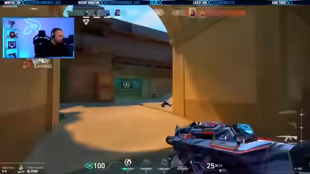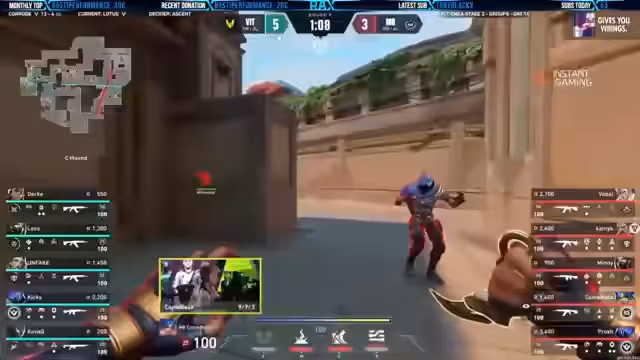 00:23:23Während des Spielens kommentiert der Streamer die Performance seiner Mitspieler. Er lobt ein Match, in dem das Team kooperativ kommunizierte und vernünftig spielte, was als angenehm und gelungen beschrieben wird. Im Gegensatz dazu kritisiert er Mitspieler, die nicht auf den Anruf hören und isolierte Plays machen, was zu Rundenverlusten führt. Er vermutet, dass Gegner stream-snipen, da deren Plays unlogisch wirken und die Informationen zu präzise sind. Die Verbindung und Performance des Spieles wird aufgrund der warmen Temperaturen als unbeständig beschrieben.
