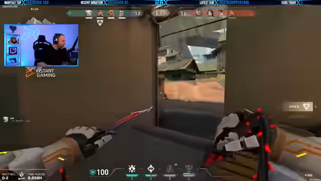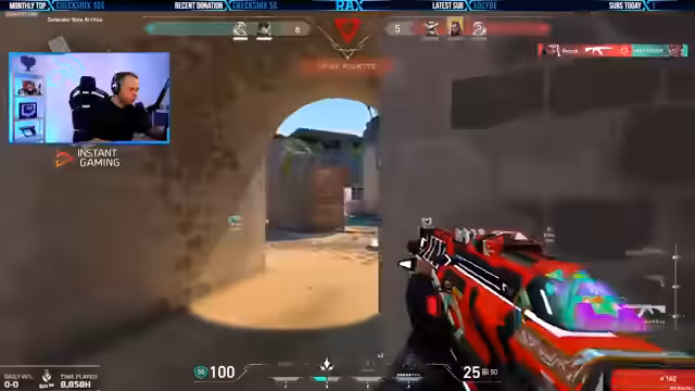 04:24:16Der Stream startet mit hektischem Gameplay in Valorant. Der Kommentator ist in mehreren Firefights involviert, beschreibt seinen Zustand mit '1 HP' und erleidet wiederholt Schaden. Trotzdem agiert er taktisch, plant seine Züge und plant ein Flankmanöver. Er portiert und plant, wobei er erwähnt, einen 'Flasher' zu haben, was auf eine strategische Nutzung seiner Fähigkeiten hindeutet. Das Gameplay ist von hoher Intensität und Fehleranfälligkeit geprägt.