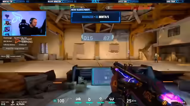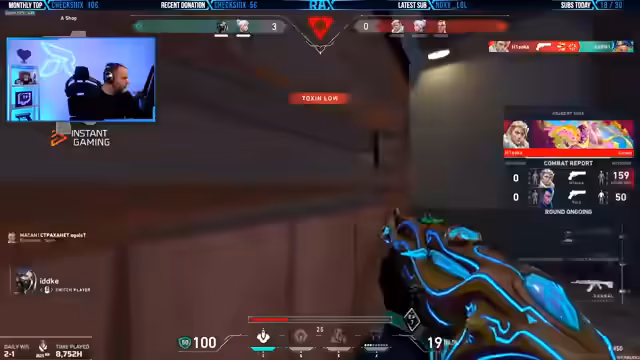 03:12:23Im Zuge eines Live-Spiels, vermutlich Valorant, diskutiert der Streamer mit dem Chat über verschiedene Charaktere und Strategien. Er analysiert Spielzüge, etwa den Einsatz von Rampage und den Charakter Breach, und beschreibt schwierige Situationen in einem rasanten Match. Der Chat liefert ihm dabei Strategietipps, wie etwa das Einnehmen von bestimmten Positionen und den synchronisierten Einsatz von Fähigkeiten, um den Gegner zu überlisten.