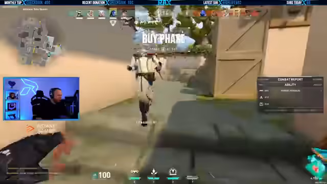 00:19:19Während des Spielverlaufs gibt es zahlreiche taktische Anweisungen zwischen den Teammitgliedern. Der Fokus liegt auf Steuerungspunkten, Rauchbomben-Einsätzen und gezielten Attacken auf bestimmte Zonen. Der Streamer kommuniziert stetig, wie er bestimmte Aktionen plant, zum Beispiel das Platzieren von Schockdarts oder das Aufstellen von Rauchbomben, um das gegnerische Team zu verwirren oder den Bombenplatz zu sichern. Die Runden enden oft knapp und ein Teammitglied wird häufig als 'Ace' gefeiert.