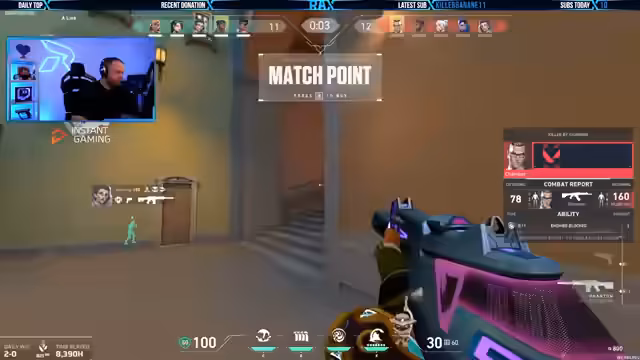 02:06:39Die Spieler befinden sich in einem hitzigen Gefecht, bei dem die Kommunikation über den Zustand der Charaktere ("Low HP", "8 HP") und die Positionen der Gegner ("Long, Long. Chamber Long. Es ist Last Long") entscheidend ist. Die Bombe liegt an der Box, und das Team versucht, die Kontrolle über C zu behalten, indem es Granaten einsetzt ("C, ist nade"). Es wird über Taktiken wie das Vortäuschen eines Angriffs auf A mit einer Ulti und das Sparen von Fähigkeiten diskutiert. Die Spieler müssen sich auf die genaue Positionierung der Gegner konzentrieren, um die Runde zu gewinnen, während sie gleichzeitig versuchen, die Teamökonomie zu managen, indem sie Ghosts verkaufen und kaufen.
