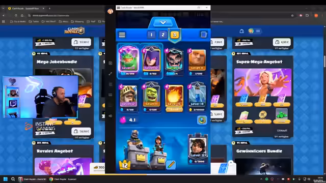 02:03:52Es wird ein Mega Joker Bundle für 60 Euro in Betracht gezogen. Es wird diskutiert, welche Karten priorisiert werden sollten und welche nicht. Der Fokus liegt auf der Frage, ob das aktuelle Deck hochgelevelt werden soll oder ob in ein anderes Deck investiert werden soll. Es wird erwähnt, dass für das Friedhof-Deck viele epische Joker benötigt werden. Es wird überlegt, ob Ranken verbessert werden sollen und welche Auswirkungen dies hätte. Es wird beschlossen, vorerst beim aktuellen Deck zu bleiben, da der Eismagier für das Friedhof-Deck fehlt. Es wird überlegt, wie man den Gegner am besten angreift und ob der Einsatz von Feuerball sinnvoll ist. Es wird der Plan gefasst, dank Satoshi eventuell noch etwas zu investieren. Es wird ein Deck mit Ritter anstelle des Skeleton-Königs getestet.