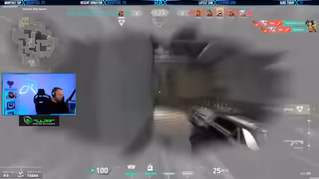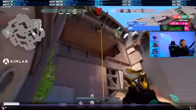 04:45:59Während des Spiels kommt es zu einem signifikanten technischen Problem, bei dem der Streamer versehentlich seine 'Ulti' abgibt und stattdessen mit einer Waffe in der Hand zurückbleibt. Dieser Fehler, der live im Stream passiert, wird selbstironisch kommentiert. Gleichzeitig werden taktische Fehlkalkulationen auf gegnerischer Seite analysiert, etwa eine Nate, die zwar Schaden anrichtet, aber nicht die volle Wirkung zeigt. Cypher wird als Lurker in der Mitte identifiziert, der konsequent beachtet werden muss.