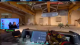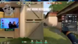 00:43:03Die folgende Runde ist von Hektik geprägt. Der Gegner tritt stark auf und hat die Initiative. Das eigene Team sieht sich mit mehreren Gegnern konfrontiert, die aggressiv pushen. Es kommt zu intensiven Kämpfen in Türbereichen und auf den Dächern (Rafter). Die Runde wird knapp gewonnen, doch die Dynamik zeigt, dass der Gegner ein hohes Tempo vorgibt, während das eigene Team mit Positionsverlusten und verpassten Stuns zu kämpfen hat.