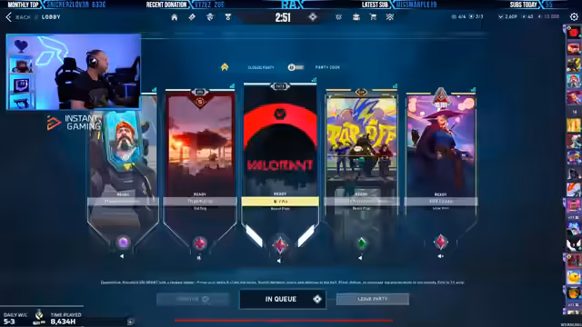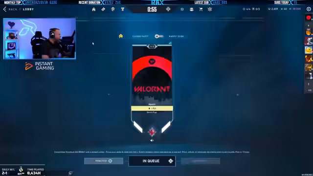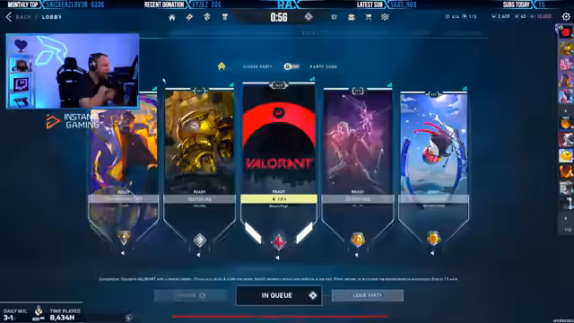 02:50:53Der Streamer plant eine 5-Stack-Party und erörtert die Notwendigkeit eines passenden Gegners mit mindestens Ascendant 3 Rang. Er zeigt den Party-Code im Stream und erklärt, dass auch Nicht-Abonnenten mitspielen können, sofern sie ihren Hauptaccount verwenden und Discord haben. Diskutiert wird das Problem, keine passende Lobby zu finden, aufgrund der sehr unterschiedlichen Ränge der Teilnehmer.