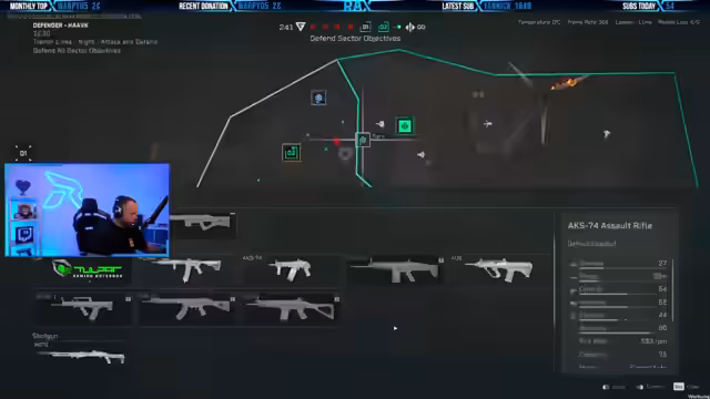 06:41:55Das Delta Force Turnier beginnt. Der Streamer wird in das Squad 'A' eingeladen und erhält den Spielnamen 'Flares'. Es stellt sich heraus, dass in der ersten Runde nur der Agent Uluru erlaubt ist. Er startet mit einem schwer gepanzerten Waffensystem, dem Javelin- oder AT4-Werfer, um gegnerische Panzer effektiv bekämpfen zu können. Die ersten Minuten der Runde sind von hektischem Kampfgeschehen und der Eroberung von Punkten geprägt.