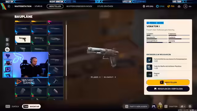 05:58:38Es wird über den Wert und die Menge von gelooteten Gegenständen wie Matriarchenreaktoren und Rathauschlüsseln gesprochen. Die Spieler tauschen sich über ihre Strategien aus, ob sie Gegenstände verkaufen oder recyceln, wobei das Recyceln von Waffen als gängige Praxis genannt wird. Ein Spieler erwähnt, dass sein Inventar unter häufigen Niederlagen gelitten hat. Zudem wird der Verkauf von Kräutern und Bauplänen wie dem Anvil Blueprint und Silencer Blueprint auf dem Marktplatz in Betracht gezogen. Die Spieler kaufen täglich Stahlfedern, um ihre Ausrüstung zu verbessern. Es wird auch über die Verbesserung von Venatus-Waffen diskutiert, wobei ein Spieler 19 von 20 Venatus auf Level 4 hat.
