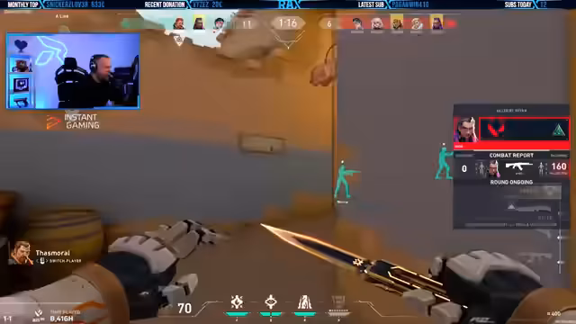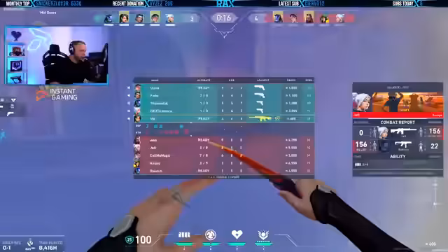 00:16:38Der Streamer spielt mehrere Runden des Spiels Valorant. Er wechselt während des Streams mehrmals den Agenten, beispielsweise von Cypher zu Deadlock, um verschiedene Strategien zu probieren. Trotz seiner guten Leistungen, wie einem 24:1-Killspiel mit dem Titel 'Team-MVP', verliert er viele Matches, was er auf das schwache Verhalten seiner Mitspieler zurückführt. Ein bestimmtes Teammitglied, 'Best Smoker Ever', wird als inkompetent und still kritisiert, während die gegnerische Team einen sehr starken Spieler mit 32 Kills in ihren Reihen hat. Dies führt zu Frustration, da er der Meinung ist, durch bessere Mitspieler leichter in der Rangliste aufsteigen zu können.