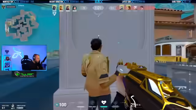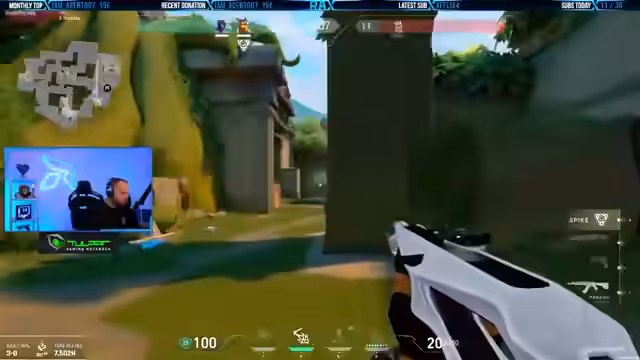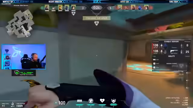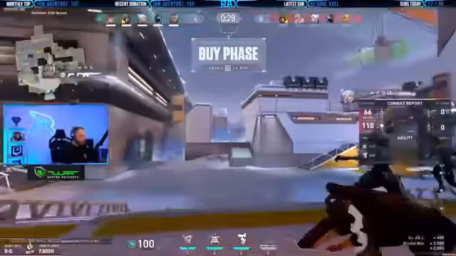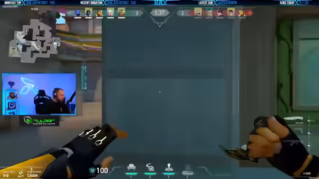 02:42:16Der Fokus des Streams liegt auf dem Gaming, insbesondere auf dem Titel Valorant. Der Streamer kommuniziert intensiv mit seinem Team über strategische Züge, z. B. das Planten der Bombe, das Nutzen von Fähigkeiten wie Viper's Ultimate und die Planung von Angriffen auf verschiedene Kartenpunkte. Es kommt zu spannungsgeladenen Situationen, in denen das Team enger zusammenrücken muss, und der Streamer analysiert Fehler und erfolgreiche Manöver wie eine perfekte Rettung mit Jett.