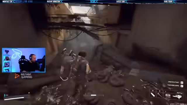 03:54:49Der Streamer beginnt mit einer Änderung des ursprünglichen Plans, um eine bessere Strategie zu verfolgen. Gemeinsam mit einem Begleiter erkunden sie ein Gebäude, wobei sie zunächst Schwierigkeiten haben, den richtigen Weg zu finden und hochzusteigen. Nachdem sie den Zugang über einen Balkon gefunden und einen Gegner mit einer Shotgun ausgeschaltet haben, looten sie den Bereich und steigen dann wieder ab, da oben kein weiterer Ertrag zu erwarten ist.