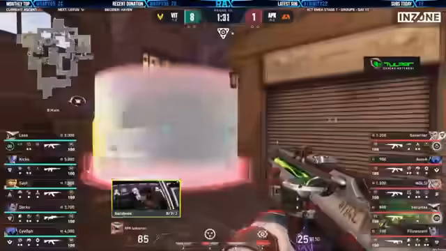05:09:30Die Runde beginnt mit vier Kicks, während Durkas Angriffsstrategie mit Neon im Fokus steht. Apex muss vorwärtsdrängen, da nur noch zwei Runden in der Hälfte zu spielen sind. Ein 8-4 Halbzeitergebnis würde alles offenlassen, aber mit der drohenden Eliminierung für Apex dürfen sie nichts dem Zufall überlassen. Batu sichert sofort ab und eröffnet mit einem Outlaw-Pick. Apex konzentriert sich auf die A-Site, aber sie haben Schwierigkeiten, zusammenzukommen, und Safe hat es schwer. Es geht darum, Plan Denial und Re-Take-Potenzial zu haben. Durka und Batu kämpfen, aber Batu erwischt beide. Batu sichert den Rundensieg für Apex und zeigt unglaubliche Eröffnungs-Picks. Trotz eines versuchten Aces von Batu sichert Apex die Runde zum 9-2. Safe wird immer wieder erwischt, und Apex gibt zu viel Gelände auf der A-Site auf. Vitality stapelt sich auf und erwischt Apex von beiden Seiten, wodurch alles auf Batu lastet. Vitality gewinnt die Runde zum 9-3, was Apex eine Chance gibt, sich in Haven zu erholen.