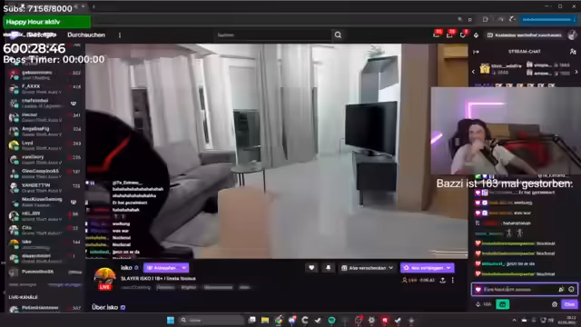 00:03:17Der Stream begrüßt die Zuschauer und erwähnt, dass der Submarathon bereits seit sieben oder acht Tagen läuft und voraussichtlich noch etwa 20 Tage weitergehen wird. Der Streamer äußert Verwirrung über einen angezeigten Namen und dankt für ein Prime-Abo. Es gibt technische Unruhe, da die Happy Hour aktiviert werden soll und der Streamer einen verpassten Sub-Gift bemerkt, den er ironisch bedauert, da es keine Sub-Goals gibt.