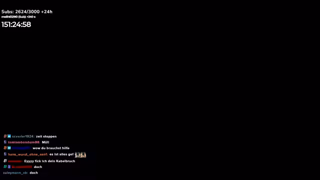 02:12:33Während des Streams treten massive technische Störungen auf, die den Stream mehrmals unterbrechen. Es kommt zu einem Black Screen, obwohl das HDMI-Kabel, wie behauptet, fest an der Kamera befestigt ist. Jörg und der Streamer versuchen, das Problem zu lösen, indem sie das Kabel überprüfen und den HDMI-Anschluss inspizieren, können aber keine offensichtliche Ursache finden. Diese Unterbrechungen führen zu Frustration und Verzögerungen bei den anstehenden Aufgaben, da die Stream-Kontinuität nicht aufrechterhalten werden kann.
