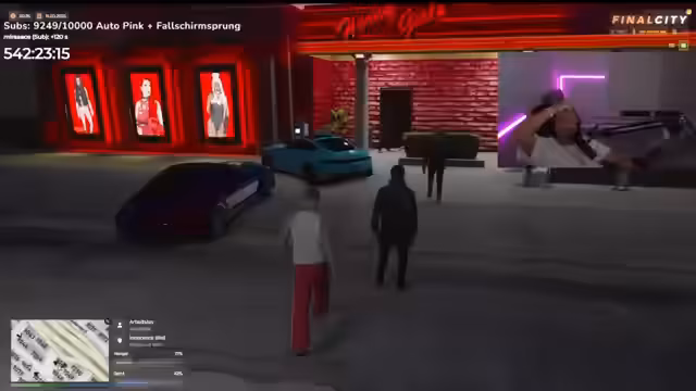 03:16:30Der Streamer gibt Gas, um seinen Verfolgern zu entkommen. Er ist auf der Flucht vor 'Zivis' und Mitgliedern des 'Casino'. Es kommt zu Schüssen und wilden Verfolgungsjagden durch die Stadt. Er ist panisch und sucht nach einem sicheren Ort, während er die Namen seiner Verfolger (Hayat, Mendez) ruft und den Chat um Informationen bittet.