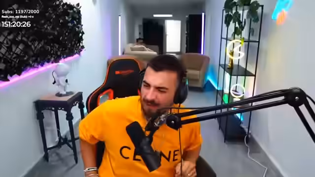 00:05:48Der Stream beginnt mit hocherfreuten Rufen und einer ersten Begrüßung der Community. Der Streamer führt die Zuschauer live durch den Flur seines neuen Hauses auf Malta und äußert seine Nervosität, da er zwei Wochen offline war. Es folgt ein wilder, chaotischer Einstieg mit Scherzen über Chatter, versprochenen finanziellen Zuwendungen und der Ankündigung, dass das neue Streaming-Zimmer noch nicht ganz fertig ist, da es noch fehlende Einrichtungsgegenstände wie einen Teppich und einen Kicker gibt.