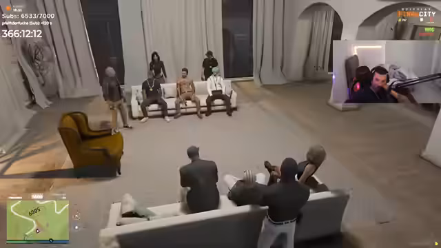 13:50:10Es wird über die Lage des Anwesens diskutiert, das sich außerhalb der Stadt befindet, was als Vorteil angesehen wird, um Konflikte zu vermeiden. Es wird betont, dass das Anwesen eines der besten überhaupt ist. Während der Besichtigung werden Flashbacks ausgetauscht und die Vorzüge des Anwesens hervorgehoben, wie das Tonstudio und die Möglichkeit, Partys zu veranstalten. Es wird überlegt, Bilder von Gründungsmitgliedern aufzuhängen und eine Garage für die Fahrzeuge einzurichten. Das Wohnzimmer wird als fett bezeichnet und die vorhandene Bar und Küche gelobt. Es wird der Wunsch nach einem Stöpselraum geäußert. Es wird eine McDonald's Ecke entdeckt und über die Bestellung von Cheeseburgern und Eis mit "Kamerl" diskutiert. Es wird beschlossen, weitere Bilder aufzuhängen und das Musikstudio zu besichtigen, wo ein Freestyle-Rap improvisiert wird. Es wird über die Möglichkeit gesprochen, Musiker für das Anwesen zu engagieren und eine Party mit Bitches zu veranstalten. Es wird ein Grillplatz entdeckt, an dem früher Asimboe Bembete gegrillt hat. Es wird über die Parkmöglichkeiten für Lamborghinis gesprochen und der Wunsch geäußert, das Anwesen für eigene Zwecke zu nutzen und dafür Miete zu zahlen.