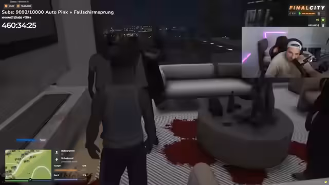 08:32:00Es wird über eine bevorstehende Gerichtsverhandlung gesprochen, bei der eine Aussage zurückgezogen wurde, um ein Kontaktverbot zu vermeiden. Zudem wird erwähnt, dass es eine Anweisung gibt, wonach im Zusammenhang mit "Oktura" für eine Woche kein Polizeieinsatz erfolgen soll. Der Streamer erkundigt sich, ob jemand etwas zu essen oder zu trinken möchte und erwähnt, dass man dies dort kaufen kann, wenn die aufhören. Es wird ein Überfall mit Geiselnahme simuliert, bei dem die Geiseln mit Waffen bedroht werden. Der Streamer fragt, ob die Leute keine Angst haben und äußert sich verwundert über das Outfit eines anderen Teilnehmers. Es wird ein Shoutout an Isco gegeben, der ebenfalls streamt. Ein Gespräch mit Amsterdam über einen Fall, bei dem Beweise vorlagen, aber der Beschuldigte freigelassen wurde. Amsterdam erklärt, dass er viele Einflüsse hatte und nicht nur Richter beteiligt waren. Er verneint, dass Bitcoin Breitenberg Einfluss genommen habe.