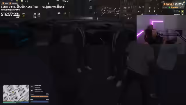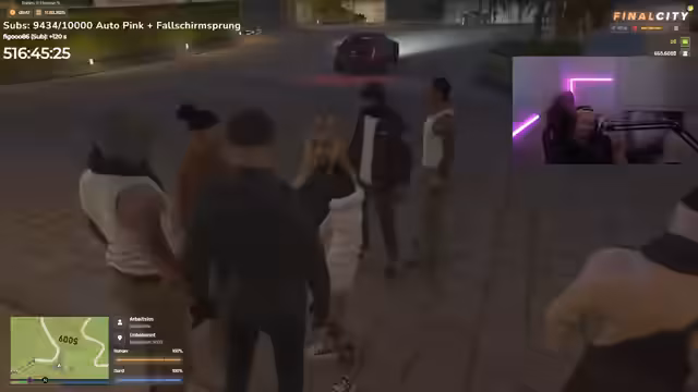 02:21:40Der Hauptfokus des Stream-Abschnitts liegt auf einem gemeinsamen Rollenspiel in dem Spiel Final City. Bazzi und seine Community schlüpfen in die Rollen von Charakteren in einer fiktiven Welt. Das Spiel ist geprägt von spontanen, oft chaotischen Aktionen, wie Routinekontrollen von Fahrzeugen und verbalen Auseinandersetzungen. Die Eskalation im Chat spiegelt sich im Rollenspiel wider, wobei reale Nutzer wie Peach und Kalito imitiert und beleidigt werden. Bazzi stellt dabei mehrfach klar, dass die Aggressionen nur ein fiktiver Teil des Spiels sind und nicht auf reale Personen bezogen sind.