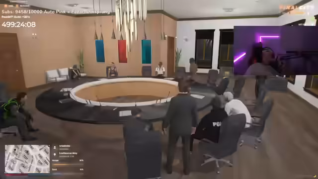 02:53:24Bei der Suche nach einem geeigneten Anwesen für die Familie kommt es zu Spannungen mit einer rivalisierenden Gruppe, was in einer Schießerei gipfelt. Nachdem die Lage beruhigt ist, sucht der Streamer das Gespräch mit anderen potenziellen Partnern wie Barelo und Abdel, um eine mächtige Allianz zu schmieden. Es werden Ränkespiele und Loyalitätsfragen innerhalb des organisierten Verbrechens thematisiert.