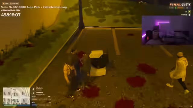 03:52:38Die eskalierende Spannung gipfelt in einer direkten Konfrontation. Marcel, ein einflussreicher Akteur, wird als Inhaber der OGs dargestellt, die unter seiner Führung angeblich die gesamte Stadt beherrschen. Ein Streit über die Familienführung mündet in einer tätlichen Auseinandersetzung, bei der eine Waffe gezogen wird. Ein Teilnehmer wird als Geisel genommen, was die ernste und unkontrollierte Lage innerhalb der Gruppe verdeutlicht.