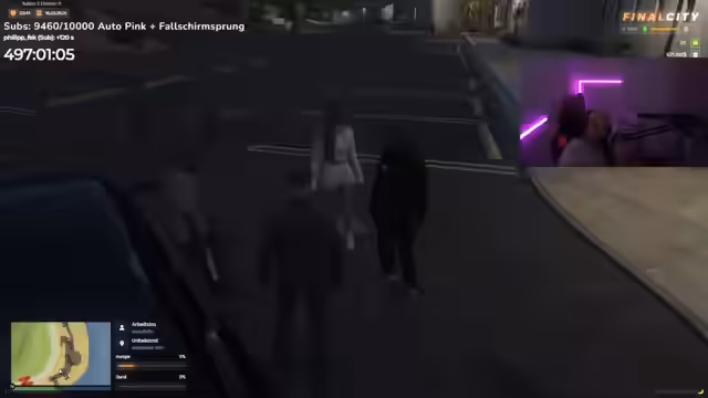 02:17:49Die Spannung zwischen den Charakteren Bitcoin und Marcel eskaliert in einer direkten Konfrontation. Marcel stellt Bitcoin eine provokante Wette: Er wettet, dass er ihm innerhalb der nächsten drei Wochen dessen Waffenroute wegnehmen wird. Als Einsatz werden 100.000 Nashis vorgeschlagen. Bitcoin geht auf die Wette ein, unter der Bedingung, dass Marcel bei Verlust nackt im Unicorn-Club tanzen und "Daddy" rufen muss. Marcel seinerseits willigt ein, bei einer Niederlage die härteste mögliche Straße zu akzeptieren. Diese Wette setzt die Dynamik im Server für die nächste Zeit massiv unter Spannung und kündigt einen größten Konflikt an.