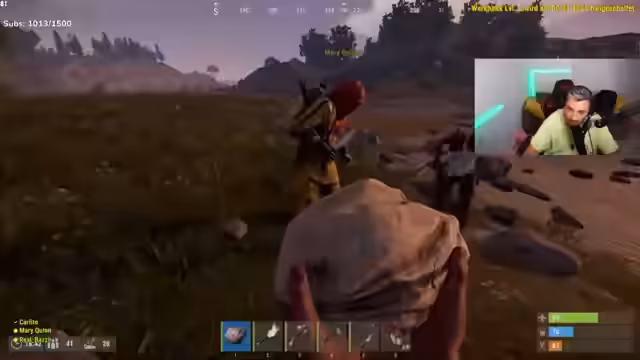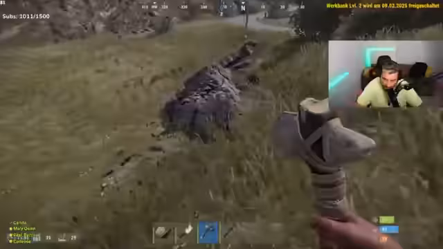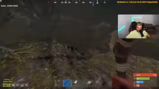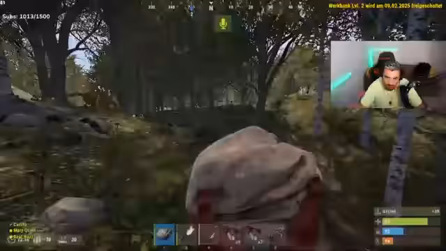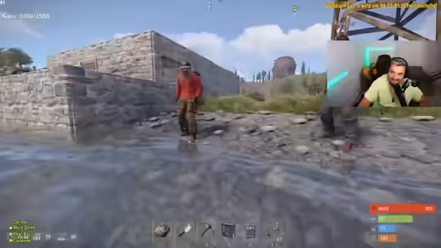 01:39:24Nachdem alle technischen Hürden genommen und die Regeln, insbesondere der Verbot von Gruppenzugehörigkeiten und IP-Leaks, besprochen wurden, startet das Spiel Rust. Der Streamer ist neu im Spiel und absolviert das Tutorial. Er zeigt sich anfangs leicht überfordert mit den grundlegenden Spielmechaniken wie der Holzgewinnung und dem Handwerksmenü, während sein Teammitter Whisky bereits weit fortgeschritten ist. Er willigt ein, dass sich die Teilnehmer gegenseitig im Spiel angreifen können, solange es nicht persönlich genommen wird.