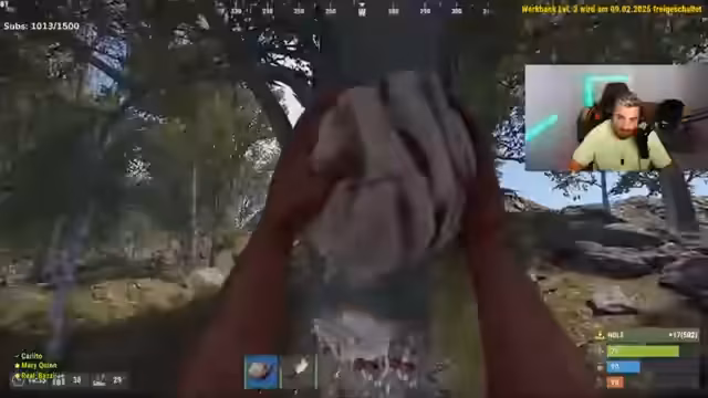 02:14:30Der Streamer startet das Rust-Tutorial und äußert Verwirrung über die Anweisungen, wie z.B. was ein Beil sei. Er findet einen Stein und stellt fest, dass er sich in Malta, genauer gesagt in San Juan befindet. Nach dem Öffnen des Inventar-Menüs bemerkt er, dass sein Charakter keine Hose trägt und entschuldigt sich beim Twitch-Team dafür. Er bittet den Chat um Hilfe bei den Main-Settings und der grundlegenden Spielmechanik. Es wird versucht, die Audioeinstellungen anzupassen, da das Spiel zu laut ist. Der Streamer interagiert mit einem NPC, der ihm Tipps gibt, und versucht, eine Fackel zu benutzen, hat aber Probleme damit. Er rennt mit Shift, öffnet die Karte mit G und stellt fest, dass er live sein muss, um zu spielen. Es wird erwähnt, dass ein Kabel locker ist und der Puls gemessen werden muss. Der Streamer rüstet einen Stein aus und beginnt, Bäume und Steine abzubauen, um Ressourcen zu sammeln.