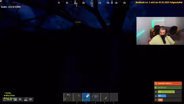 04:19:57Nach einigen Rückschlägen und dem Verlust der Ausrüstung beginnt der Streamer erneut von nahezu Null. Er ist immer noch nackt und muss sich erst mit Kleidung versorgen. Er kehrt zur zurückgewonnenen Basis zurück, um den Bau fortzusetzen. Fokus liegt nun auf dem Errichten einer stabilen Lagerstruktur und dem Bauen von Schlafsäcken. Dabei ergeben sich neue technische Fragen, wie das korrekte Verstärken von Wänden und der Bau einer Werkbank. Die Interaktion mit Mitspielern bleibt ein zentraler Bestandteil der Stream-Erfahrung.