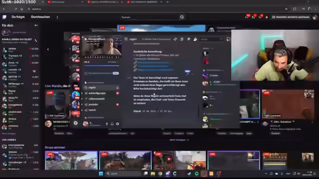 01:25:48Nach einer angekündigten Whisky-Screitling-Gruppe geht es um eine Teilnahme am Rust-Event von Streamer Monte. Der Streamer erwähnt, dass er aufgrund seiner anhaltenden Sub-Spenden von weniger Zuschauern überrascht ist, willigt aber ein. Er kommuniziert intensiv mit einem Mod namens MasterXL, um die Teilnahme seines Teams zu klären, und macht sich über die technischen Anforderungen und den Discord-Server lustig, vor allem die IP-Adressen, die für alle sichtbar sind.
