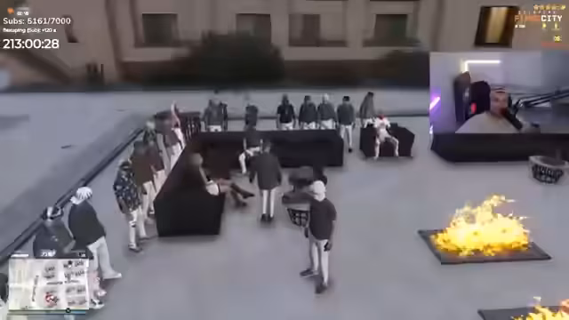02:11:51In der virtuellen Stadt stoßen der Streamer und seine Gruppe auf mehrere neue Charaktere und bekannte Personen. Es kommt zu einem emotionalen Treffen mit Selina und eine provokante Begegnung mit einer Frau namens Aib, bei der der Streamer über deren angebliches Verhalten mit verheirateten Männern spricht. Eine zentrale Neuigkeit ist die Ankündigung von Mr. Bitcoin, dem Anführer des Kali-Kartells, der sich der Familie Grace anschließt. Dies führt zu einer neuen Allianz und verändert die Machtverhältnisse in der Stadt.