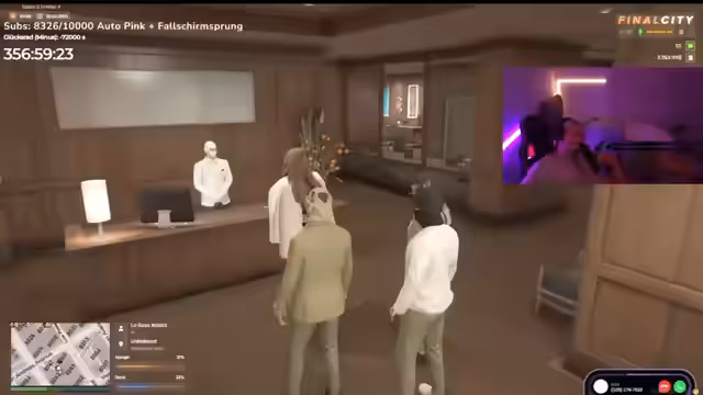 08:31:01Es kommt zu einem Streit zwischen Marcel und Wadi Tim, in dem es um Steuern und Beleidigungen geht. Wadi Tim wird beschuldigt, CJ umgebracht zu haben und kein Geld auszuzahlen. Es folgen Beleidigungen und der Vorwurf, ein Bläser zu sein. Der Streamer betont, dass er immer präsent ist, auch wenn er hohe Geldstrafen offen hat. Es wird über Blasen geredet und Marcel Helis wird erwähnt. Wadi Tim wird aufgefordert, sich wie ein Mann zu verhalten und mit ihm zu kämpfen. Es kommt zu einer Entschuldigung von Wadi und dem Versprechen, auszuzahlen. Der Streamer verlässt die Situation und geht zu einer anderen Familie. Er vertraut Bitcoin ein letztes Mal und macht einen Deal mit ihm. Bitcoin wird abgeknallt und das Anwesen wird abgeschlossen. Es wird diskutiert, ob man ins Casino gehen soll. Wadi wird aufgefordert, die Waffen wegzunehmen und die Politik zu lassen. Barello wird gebeten, Bescheid zu sagen, falls ihm jemand etwas sagt. Es kommt zu einer Eskalation und der Streamer verlässt das Anwesen, da die Leute nur an ihren Content denken.