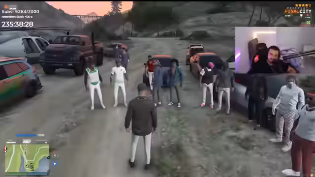 05:53:55Es wird die Idee geäußert, dass es im RP mehr Perspektiven geben sollte, indem beispielsweise Jackson streamt und in jeder Familie mindestens ein Streamer aktiv ist. Es wird spekuliert, dass dies GTA auf ein anderes Level heben würde. Es wird erwähnt, dass man mit Widen reden wird. Es wird festgestellt, dass bei Majestic niemand anwesend ist und die Pools rot sind, was auf Blutverluste der Familienmitglieder hindeutet. Es wird überlegt, zum Anwesen zu fahren. Es wird angekündigt, dass man später duschen muss. Es wird erwähnt, dass morgen Tag 50 des Submarathons ist und dies mit Jackie Cola gefeiert werden soll. Es wird die Rückkehr zu den pinken Haaren angekündigt. Es wird festgestellt, dass man seit dem Runtersetzen der Sense wie eine Maschine schießt.