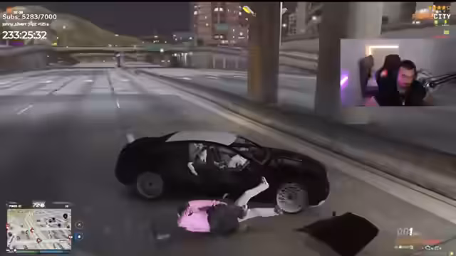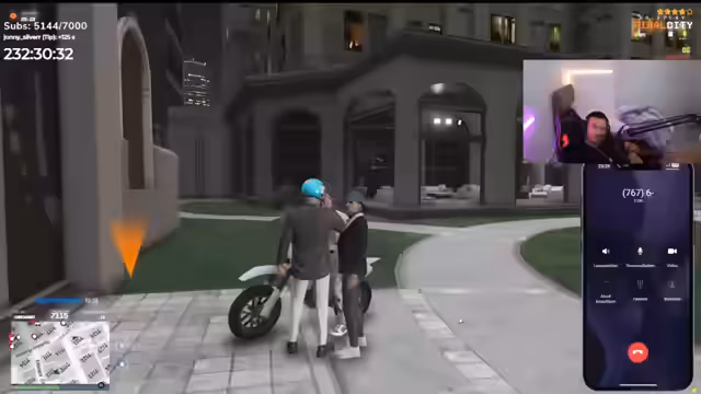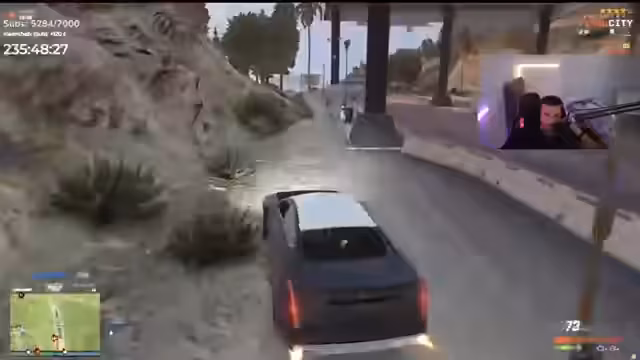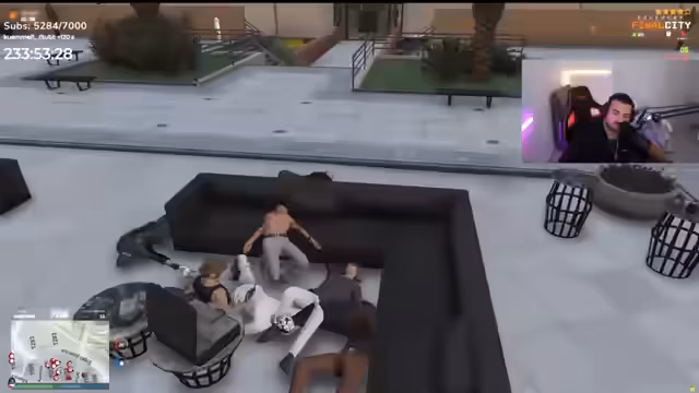 06:04:21Der Streamer organisiert eine Rettungsaktion für die verletzte Adra, die in Bürgerstadt von Personen in Bauarbeiterkleidern angegriffen wurde. Er befiehlt, die Angreifer sofort zu eliminieren. Während der Rettungsfahrt werden die Anwesenden jedoch selbst von zwei Fahrzeugen verfolgt und beschossen, was zu einem chaotischen Schusswechsel mit der Polizei eskaliert.